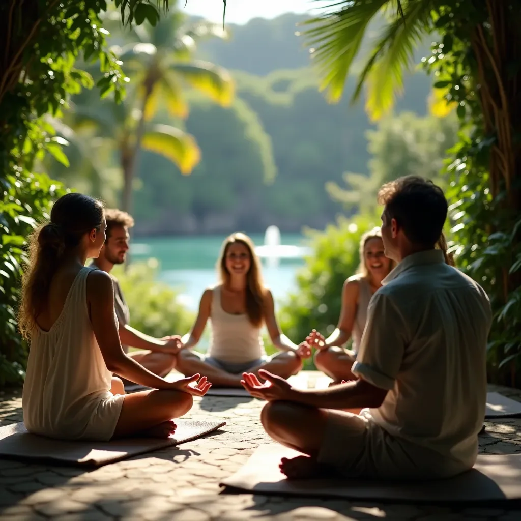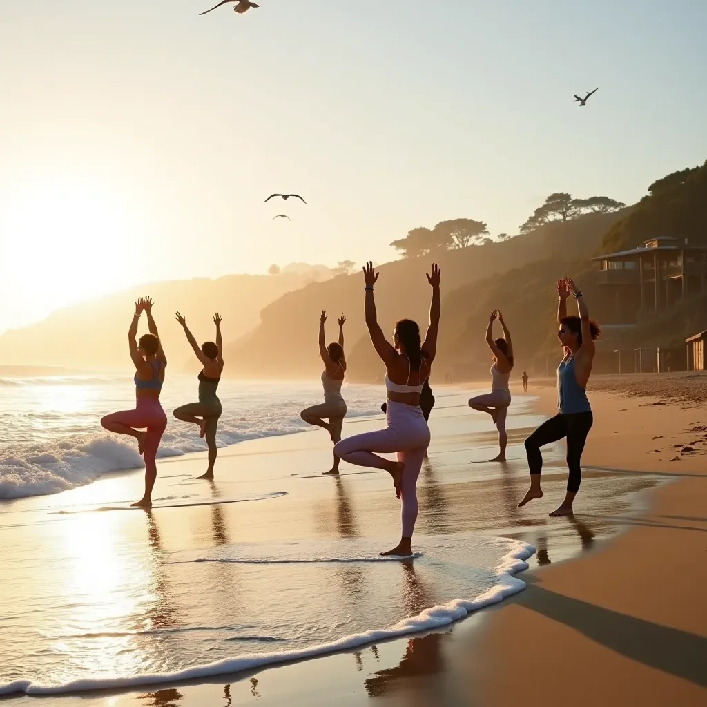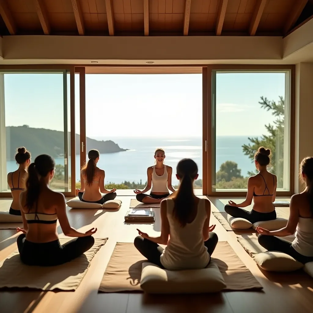 Clases de yoga, meditación guiada y talleres de bienestar en un entorno costero.